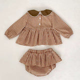 Introduce your little one to timeless style with this charming two-piece cotton set featuring a classic gingham pattern. The coordinated top and matching bottoms create an effortlessly put-together look that's perfect for playdates, family gatherings, or everyday wear. Crafted from soft, breathable cotton, this set keeps your baby girl comfortable throughout the day while the sweet gingham design adds a touch of vintage-inspired charm.