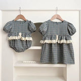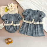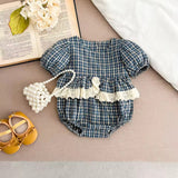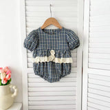 The Georgina Cotton Romper features a charming gingham pattern and delicate lace ruffles that add a sweet, stylish touch. Its soft cotton fabric and short sleeves keep your baby comfortable making it perfect for layering and playtime. Dress your little one in this adorable romper for effortless charm and breathable comfort.