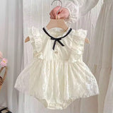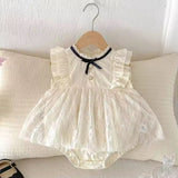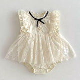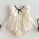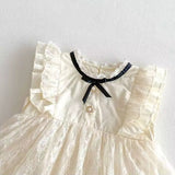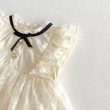 Dress your baby girl in festive charm with this holiday lace bow dress. Featuring delicate fluttered sleeves and a beautiful lace overlay, it brings a soft, elegant touch to any celebration. The front bow applique adds a sweet, standout detail perfect for memorable holiday moments. Crafted for comfort and style, this dress makes special occasions even more delightful.