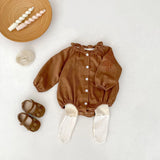 Dress your baby girl in this stylish long sleeve textured romper, featuring beautiful embroidered details that add a touch of charm. The front buttons provide easy dressing and changing, making it both practical and adorable. Perfect for keeping your little one comfortable and looking lovely all day long.