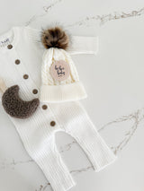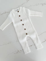 This ribbed knit jumpsuit features a cozy long-sleeve design perfect for all-day comfort. With convenient front buttons, dressing and diaper changes are effortless. The unique ribbed pattern adds subtle style, making it an ideal choice for your little one’s everyday adventures.