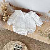 This Juliet Embroidered Romper is crafted from soft cotton to keep your baby girl comfortable all day. Featuring long sleeves and delicate embroidered details, it combines style with practicality. Snaps at the diaper area with front buttons to make changing quick and easy.