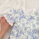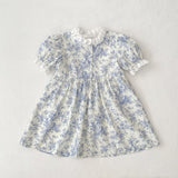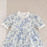 Introducing the Charlene Cotton Dress, an elegant piece for your little one. This dress features short sleeves and delicate eyelet trim, adding a touch of sophistication to the classic toile pattern. With front buttons for easy dressing, your baby will feel luxurious and stylish in this premium piece.