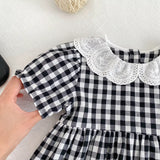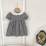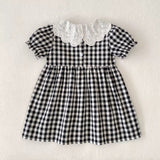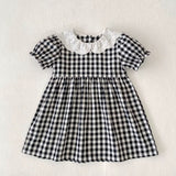 Indulge in luxury with our Gingham Cotton Dress. This exquisite short-sleeved piece is adorned with a contrasted eyelet collar, adding a touch of elegance to any baby's ensemble. Made with the finest quality cotton, your little one will feel comfortable and stylish all day long.