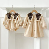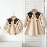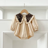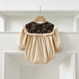 Introducing the Harper Button Romper. This adorable baby girl dress features long sleeves and a floral collar for a charming touch. The front buttons add convenience and style. Made with soft cotton for comfort. Elevate your little one's wardrobe with this must-have piece.