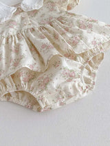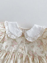 This Jolene Floral Romper features a charming floral print and a contrasting collar, perfect for your baby girl. The short sleeves keep her comfortable and cool, making it an ideal choice for warm days. Designed with both style and comfort in mind, it’s a lovely addition to her wardrobe.