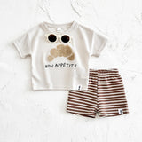 This baby boy set features a soft ribbed cotton short sleeve top adorned with a charming print. It includes matching shorts with an elastic waistband, offering comfort and easy movement for your little one. Perfect for everyday wear, this set combines playful style with practical design.