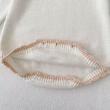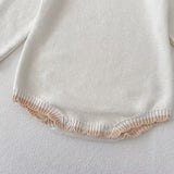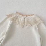 Introducing our Lace Trim Romper, designed with your baby girl's comfort and style in mind. This charming one-piece features long sleeves that keep little arms warm and protected, paired with an elegant lace collar that adds a touch of sophistication.
