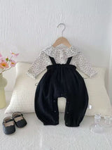 The Nova 2-Piece Set features a long sleeve top adorned with a floral pattern, paired with a matching jumpsuit that includes practical shoulder straps. Crafted from lightweight, breathable fabric, this outfit ensures comfort for baby girls, making it suitable for warm weather and active play.