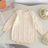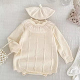 Indulge in luxury with our Textured Knit Romper. With a long sleeve design, soft cozy knit fabric, and delicate ruffled trim, this romper exudes elegance and comfort.