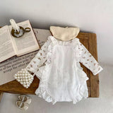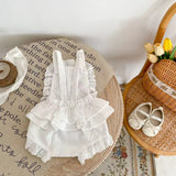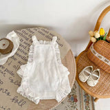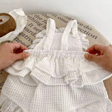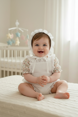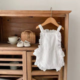 Elevate your little one's wardrobe with the Textured Ruffled Romper, a sublime fusion of intricate lace trim and soft, textured fabric. This exquisite piece envelops your baby in delicate charm, embodying the art of grace and comfort, making every moment a tableau of elegance and style.