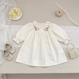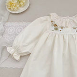 Delight your little one in the Wilma Embroidered Dress, featuring charming embroidered florals that add a touch of elegance. Crafted with long sleeves for cozy comfort and an A-line silhouette that allows easy movement, this dress is perfect for any special occasion or everyday wear. Soft and breathable fabric keeps your baby comfortable while looking adorable.