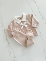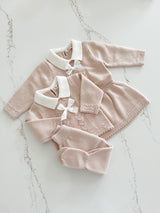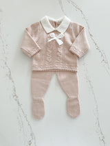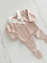 Elevate your little one's wardrobe with our Cable Knit 2-Piece Set. The soft, luxurious cable knit fabric is accented with a delicate bow and contrasting collar for a sophisticated touch. Perfect for any occasion, this set is a must-have for your baby's collection.