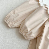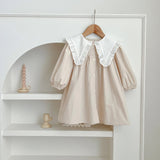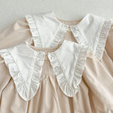 "Get ready to dress up your little one in style with our Cotton Dress! Made with soft cotton for all-day comfort, this long sleeve dress features a unique pointelle ruffled collar and front buttons for added charm. Perfect for any occasion, this dress is sure to make a statement."
