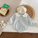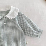 This Gingham Cotton Romper features a long sleeve design with front buttons and a detailed collar, making it both stylish and functional for your baby. Made of high-quality cotton, it provides comfort and durability for everyday wear. The perfect addition to any baby's wardrobe.