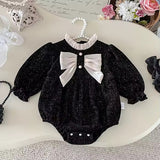 Dress your little one in holiday charm with this adorable cotton bow romper. Featuring a sweet front bow applique and cozy long sleeves, it's the perfect blend of style and comfort for festive celebrations. The soft, breathable cotton fabric keeps baby girl comfortable all day long, while the charming bow detail adds that special touch every parent loves.