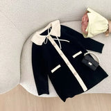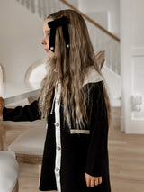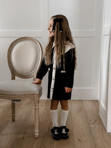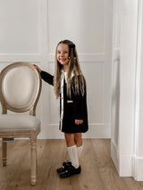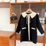 Upgrade your little one's winter wardrobe with our Holiday Collection - Knit Pearl Dress. This elegant dress features long sleeves with front pearl buttons and a bow applique, paired with a charming collar. Stay stylish and warm this season with this elegant and timeless design.