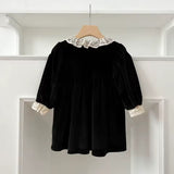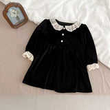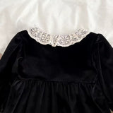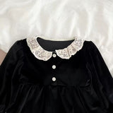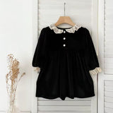 Dress your baby girl in festive charm with the Holiday Collection - Lena Velour Dress. Crafted from soft velour, this dress offers gentle comfort against delicate skin. The elegant lace trim collar adds a touch of classic sophistication, perfect for holiday gatherings and special occasions. Celebrate the season in style while keeping your little one cozy and beautiful.