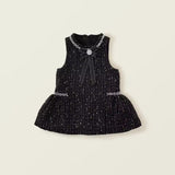 Make holiday moments unforgettable with the Holiday Collection - Tweed Dress for baby girls. This charming dress features a textured tweed fabric adorned with a stylish front bow applique, enhanced by sparkling rhinestones for a festive sparkle. Perfect for special events, it blends timeless elegance with a touch of playful shine, keeping your little one both comfortable and beautifully dressed for the season.