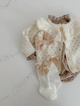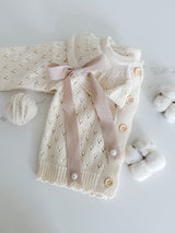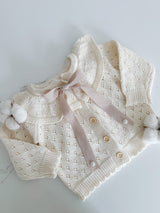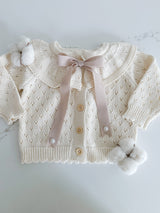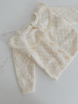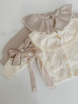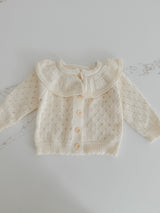 Indulge your little one in the luxury of our delicate Hollow Out Knit Cardigan. The intricate knit pattern and ruffled collar exude sophistication and elegance, perfect for any occasion. With long sleeves for warmth and comfort, this baby cardigan is truly a statement piece in your child's wardrobe.