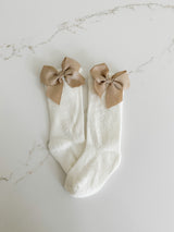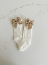 These 0-1y sized, 100% cotton socks boast a unique hollow out pattern and a pretty bow on the side, making them both functional and fashionable. Perfect for young children, the high-quality cotton fabric ensures the socks are soft, flexible, and comfortable to wear. Hit just above the knee.
