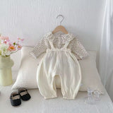 The Nova 2-Piece Set features a long sleeve top adorned with a floral pattern, paired with a matching jumpsuit that includes practical shoulder straps. Crafted from lightweight, breathable fabric, this outfit ensures comfort for baby girls, making it suitable for warm weather and active play.